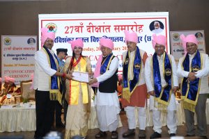 इस अवसर पर राष्ट्रीय कवि श्री माधव कौशिक को मानद उपाधि से सम्मानित किया साथ ही मेधावी विद्यार्थियों को मेडल और प्रशस्ति पत्र प्रदान किए गए।