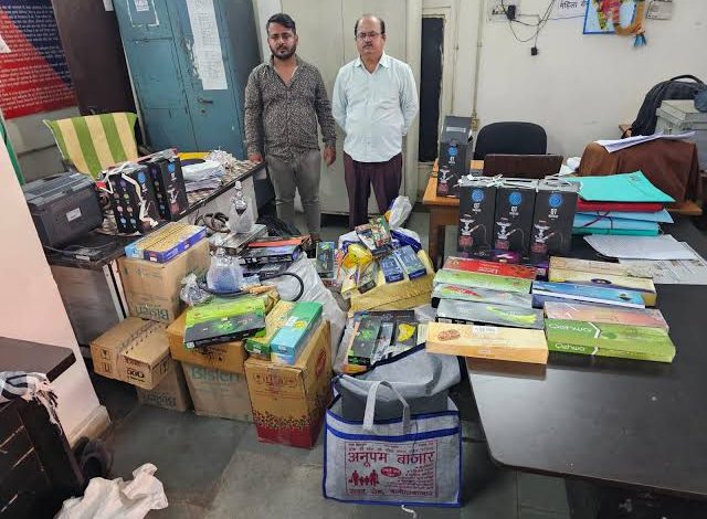 शहर में हुक्के का सामान, तंबाकू के अलग-अलग फ्लेवर बिकने की शिकायत मिलने पर गोलबाजार पुलिस थाने की टीम और साइबर सेल ने मिलकर जयस्तंभ चौक, मयूरा होटल के बाजू में स्थित राज पान पैलेस में छापा मारा। यहां से लाखों रुपये कीमत का प्रतिबंधित हुक्का पाट, पाइप, नोजल, कोल, विभिन्न प्रकार के फ्लेवर समेत हुक्का से संबंधित अन्य सामान जब्त किया गया।