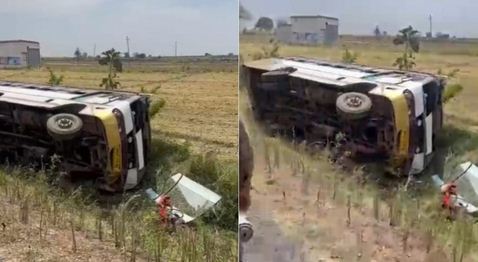 अनियंत्रित होकर खेत में पलटी यात्री बस, अस्पताल में इलाज जारी