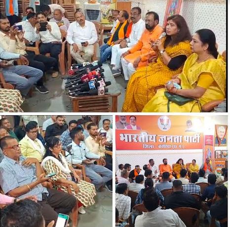 साथ ही नए जिलों का व्यवस्थित कार्य संचालन करने के साथ कोरिया को संभाग बनाने की पहल पर किया जाएगा अमल । प्रेसवार्ता में मुख्य रूप से कोरबा लोकसभा प्रत्याशी सुश्री सरोज पांडेय, जिला अध्यक्ष कृष्ण बिहारी जायसवाल, जिला उपाध्यक्ष लक्ष्मण राजवाड़े , शैलेश शिवहरे ,जिला महामंत्री पंकज गुप्ता, बैकुंठपुर नगर पालिका अध्यक्ष नविता शिवहरे,जिला संवाद प्रमुख विमल कांत गुप्ता सहित जिले के सम्मानित पत्रकार गण व भाजपा कार्यकर्ता उपस्थित रहे।