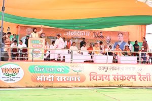 और ये देश को लूटने वाले मोदी जी पर आरोप लगाते हैं भाजपा अध्यक्ष जगत प्रकाश नड्डा ने कहा कि इसके विपरीत मोदी जी ने कहा था न खाऊंगा और न खाने दूंगा। इसी बात का असर है सारे लुटेरे जो कभी एक दूसरे को देखना पसंद नही करते थे आज एक साथ india गठबंधन बनाकर मोदी के खिलाफ चुनाव लड़ रहे हैं 2014 में जब मोदी जी प्रधानमंत्री बने तो उन्होंने कहा था।भाजपा की सरकार देश के अंतिम पंक्ति में खड़े कमजोर और गरीब तपके के व्यक्ति की सरकार है।देश की महिलाओं को मजबूत करने वाली सरकार है।देश की मुस्लिम बहनों को तीन तलाक की फास से छुड़ाने वाली सरकार है।किसानों की सरकार है।और जो मोदी जी ने कहा वह करके दिखा दिया। मोदी जी की गारंटी याने गारंटी पूरा होने की पूरा गारंटी।छ ग की महिलाओं को महतारी वंदन योजना का लाभ देने की उन्होंने घोषणा किया था जो पूरा हुआ आज विगत दो माह से प्रत्येक महिलाओं के खाते में एक एक हजार रुपया महीना आने लगा है।किसानों के धान के उचित मूल्य मिल रहै है।प्रति एकड़ 21 क्विंटल के औसत से 3100 रुपए प्रति क्विंटल की दर से भाजपा के सरकार ने धान खरीद कर व पिछले दो साल के धान का बोनस मिलने से किसानों के जीवन मे सुधार के रास्ते खुले हैं । आने वाले 5 साल तक प्रत्येक व्यक्ति को 5 किलो राशन फ्री में दिया जाएगा।उन्होंने कहा कि आप ऐसे घोटाले बाज लोगों को सत्ता की चाबी सौपना चाहते हैं या जो गरीबों की.किसानों,की महिलाओं की,बच्चों की,युवाओं की जीवन को सुधारने में दिन रात लगे है।ऐसे व्यक्ति को चुनना चाहेंगे।आप के एक व्होट के ताकत को आप जानते हैं इस एक व्होट का प्रभाव है । वर्षों से कश्मीर में आतंकवाद का राज चल रहा था।हम नारे लगाए करते थे एक देश मे दो विधान दो प्रधान नही चाहिए।कश्मीर को स्पेशल राज्य का दर्जा प्राप्त था।आपके एक व्होट का प्रभाव है आज वहां से धारा 370 हट गया।आपके एक व्होट का प्रभाव है तीन तलाक जैसे क्रूर कानून को हटाया गया,पाकिस्तान को उन्ही की भाषा मे सर्जिकल स्ट्राइक कर जवाब दिया गया।धार्मिक आधार पर विदेश में रह रहे हिंदुओं को भारत की नागरिकता दिया जा रहा है.महिलाओं के लिए 33% आरक्षण कानून पास हुआ है आपके एक व्होट ने भाजपा को मजबूत करने का काम किया है। इसी मजबूती के। चलते हमारी पार्टी ने बड़े बड़े कदम उठाए हैं । आज हमारा देश विश्व के पांचवे नंबर का अर्थव्यवस्था बन गया है।और अगर आप लोगों का इस बार फिर से मोदी को तीसरे बार प्रधानमंत्री बनाते हैं तो विश्व के तीसरे नंबर की अर्थव्यवस्था बनने के हमारे देश को कोई नही रोक सकता । कार्यक्रम में रायपुर लोकसभा के प्रत्याशी बृजमोहन ने स्वागत भाषण दिए।वहीं भाजपा के प्रदेश अध्यक्ष किरण देव ने भी उद्बोधन कर मोदी को फिर से प्रधानमंत्री बनाने हेतु अपील किया तो वही सतनामी समाज के ग