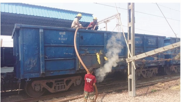 रेलवे स्टेशन पर कोयले से भरी मालगाड़ी में लगी आग