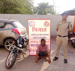 इसी तारतम्य में प्रार्थी दउवा साहु निवासी बी एस यु पी कालोनी टाटीबंध रायपुर का थाना आकर रिपोर्ट दर्ज कराया की किसी अज्ञात चोर के द्वारा उसकी *मोटर सायकल स्पलेण्डर क्रमाकCG-04-NJ-5024* *जिसका इंजन नबंर HA11EVMHA79565 व चेचिस* *नबंरMBLHAW117MHA80191माडल2021 रंग काला किमती करीबन 35000/- रूपये* को देशी शराब दुकान के पास से चोरी कर ले गया है कि प्रार्थी के रिपोर्ट पर अपराध कायम कर विवेचना मे सीसीटीव्ही फुटेज के सहायता से आरोपी के पहचान कर आरोपी राकेश चंदेल पिता सीताराम चंदेल उम्र 32 साल निवासी रामदरबार कोटा थाना सरस्वती नगर रायपुर को चोरी गये मशरूका मोटर सायकल के साथ पकडा गया । आरोपी को न्यायिक रिमाण्ड पर भेजा गया ।