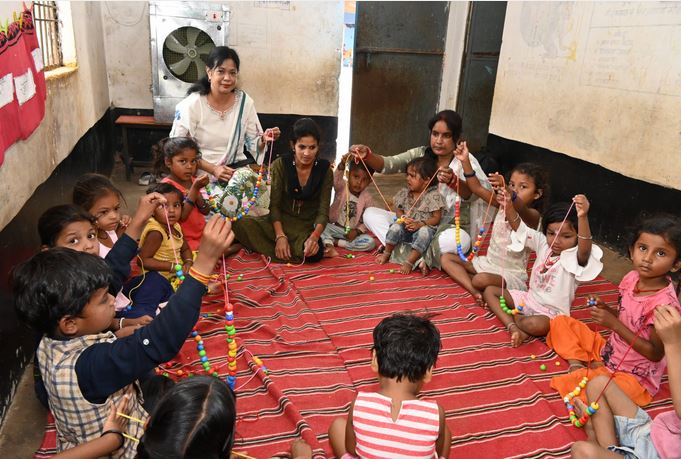 नन्हे मुन्ने बच्चों को आंगनबाड़ी केन्द्र में मिल रही शीतल हवा