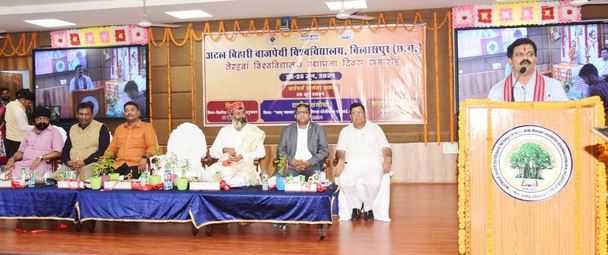 रायपुर। उप मुख्यमंत्री विजय शर्मा मंगलवार को अपने बिलासपुर प्रवास के दौरान अटल बिहारी बाजपेई विश्वविद्यालय के 13वें स्थापना दिवस समारोह में शामिल हुए। उन्होंनेे विश्वविद्यालय परिसर में स्थापित पूर्व प्रधानमंत्री भारत रत्न स्व. अटल बिहारी बाजपेई की प्रतिमा पर माल्यार्पण कर उन्हे नमन किया। उन्होेंने यूनिवर्सिटी में कम्प्यूटर लैब का भी उद्घाटन किया। उप मुख्यमंत्री शर्मा ने इस अवसर पर कहा विश्वविद्यालय आज अपना 13वां स्थापना दिवस मना रहा है। अपने उद्बोधन की शुरूआत अटल जी की कविता से करते हुए उन्हे श्रद्धांजलि दी। उन्होंने युवाओं से आह्वान करते हुए कहा कि जीवन में पूरी ताकत और मनोयोग से परिश्रम करें तो आपको जरूर सफलता मिलेगी। युवाओं को सच्चाई के मार्ग से कभी विचलित नहीं होने की सीख दी। इस अवसर पर उन्होंने विश्वविद्यालय के उत्कृष्ट शिक्षकों और बच्चों को पुरस्कार बांटे।