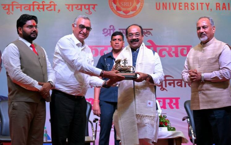 रायपुर। उप मुख्यमंत्री अरुण साव शुक्रवार को रायपुर के धनेली स्थित रावतपुरा सरकार विश्वविद्यालय में सदगुरू प्राकट्य महोत्सव और स्थापना दिवस समारोह में शामिल हुए। उन्होंने समारोह में उत्कृष्ट कार्य करने वाले विश्वविद्यालय के प्राध्यापकों और इंडो-नेपाल यूथ गेम्स में पदक जीतने वाले विद्यार्थियों को सम्मानित किया।
