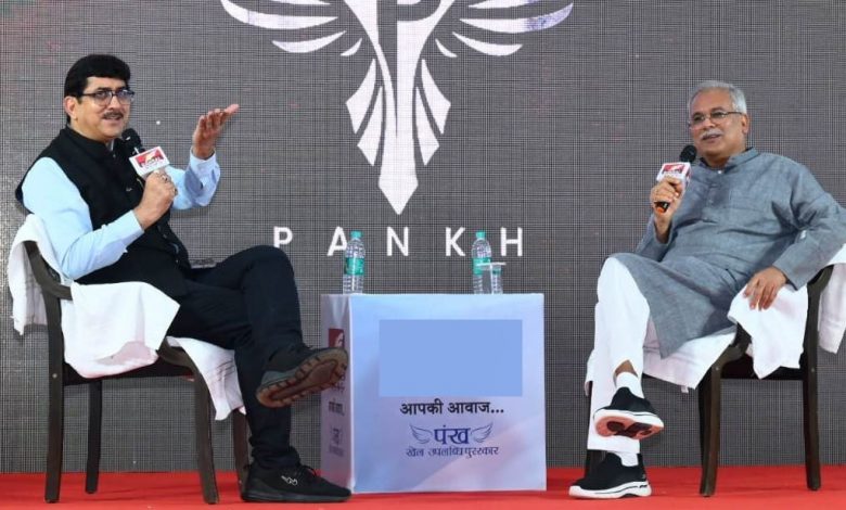 मुख्यमंत्री भूपेश बघेल बस्तर में निजी टी.व्ही. चैनल द्वारा आयोजित ‘पंख- खेल उपलब्धि पुरस्कार‘ कार्यक्रम में युवाओं को सम्बोधित कर उनका हौसला आफजाई किया। उन्होंने इस दौरान छत्तीसगढ़ के खिलाड़ियों को सम्मानित भी किया। मुख्यमंत्री बघेल ने कहा कि जो लक्ष्य तय किया है, उसे पाने के लिए रास्ता तय करना पड़ेगा। हमें विचलित नहीं होना है, बल्कि एक लक्ष्य बनाकर लगातार मेहनत करते हुए आगे बढ़ना है। मुख्यमंत्री ने कहा कि हमें युवाओं के नजरिए और उनके पक्ष को समझना होगा। बच्चों और पालकों में मधुर संबंध होने चाहिए, बात होनी चाहिए, दोनों को एक-दूसरे की बात मनानी चाहिए।