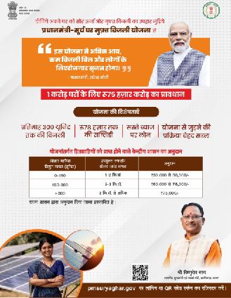 प्रधानमंत्री सूर्य घर मुफ्त बिजली योजना के तहत हितग्राहियों को प्रतिमाह मिलेगा 300 यूनिट तक मुफ्त बिजली का लाभ