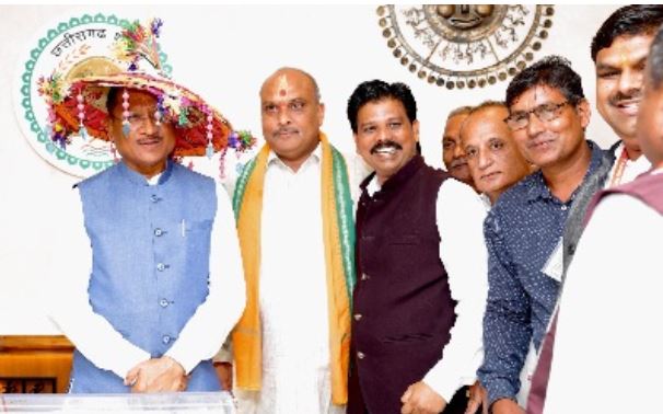रायपुर। मुख्यमंत्री विष्णुदेव साय से आज यहां विधानसभा परिसर स्थित उनके कार्यालय कक्ष में दुर्ग विधायक ललित चन्द्राकर के नेतृत्व में आये शास्त्री नवयुवक मंडल के प्रतिनिधिमंडल ने सौजन्य मुलाकात की। प्रतिनिधि मंडल ने मुख्यमंत्री श्री साय को पारम्परिक खुमरी पहना कर उनका अभिवादन किया। उन्होंने मुख्यमंत्री को दुर्ग जिले के मड़ियापार में आगामी 2 सितम्बर को आयोजित होने वाले पोला महोत्सव के 65वें आयोजन में शामिल होने का आमंत्रण दिया।