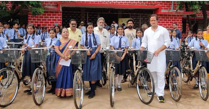 संसदीय सचिव विकास उपाध्याय द्वारा छात्राओं को सायकल वितरित