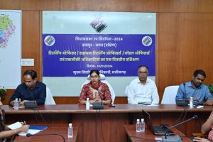 रायपुर. 30 सितम्बर 2024. मुख्य निर्वाचन पदाधिकारी श्रीमती रीना बाबासाहेब कंगाले ने आज विधानसभा उप निर्वाचन के लिए रिटर्निंग ऑफिसर, सहायक रिटर्निंग ऑफिसर, नोडल अधिकारियों और तकनीकी अधिकारियों के प्रशिक्षण को संबोधित किया। उन्होंने विधानसभा उप निर्वाचन के दौरान सभी प्रक्रियाएं पारदर्शिता और निष्पक्षता से संपन्न कराने को कहा। उन्होंने इसके लिए भारत निर्वाचन आयोग के दिशा-निर्देशों तथा निर्धारित प्रक्रियाओं का गंभीरता से पालन करने के निर्देश दिए। श्रीमती कंगाले ने प्रशिक्षण में कहा कि राज्य में विधानसभा की एक रिक्त सीट के लिए उप चुनाव होगा। इसके लिए जल्दी ही प्रक्रिया शुरू होगी। संयुक्त मुख्य निर्वाचन पदाधिकारी श्री पी.एस. ध्रुव भी प्रशिक्षण में उपस्थित थे।