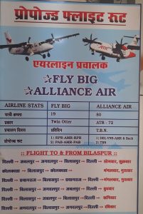 →बिलासपुर→दिल्ली के लिए उड़ान भरना प्रस्तावित है l इसी प्रकार *मंगलवार, गुरुवार को* कोलकाता→बिलासपुर → कोलकाता से,*मंगलवार, गुरुवार को* दिल्ली → प्रयागराज → बिलासपुर→ प्रयागराज →दिल्ली के लिए उड़ान भरना प्रस्तावित है