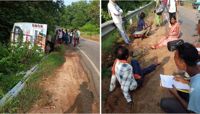 जानकारी के अनुसार, महेश बस सर्विस की बस देवभोग से रायपुर आ रही थी. रास्ते में घने कोहरे की वजह से पथरी नाला के पास मोड़ पर बस पलट गई. हादसे के वक्त बस में 20 यात्री सवार थे, जिनमें से 10 यात्रियों को चोट आई है.