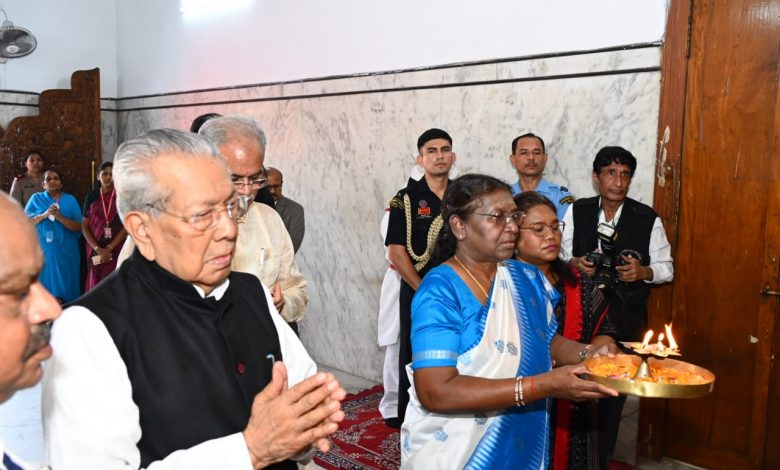 रायपुर. राष्ट्रपति श्रीमती द्रौपदी मुर्मु राजधानी के गायत्री नगर स्थित भगवान जगन्नाथ मंदिर पहुँची। यहाँ उन्होंने भगवान जगन्नाथ, बलभद्र जी तथा सुभद्रा जी के दर्शन किये। यहाँ उन्होंने देशवासियों की सुख-समृद्धि एवं निरंतर प्रगति की कामना की।