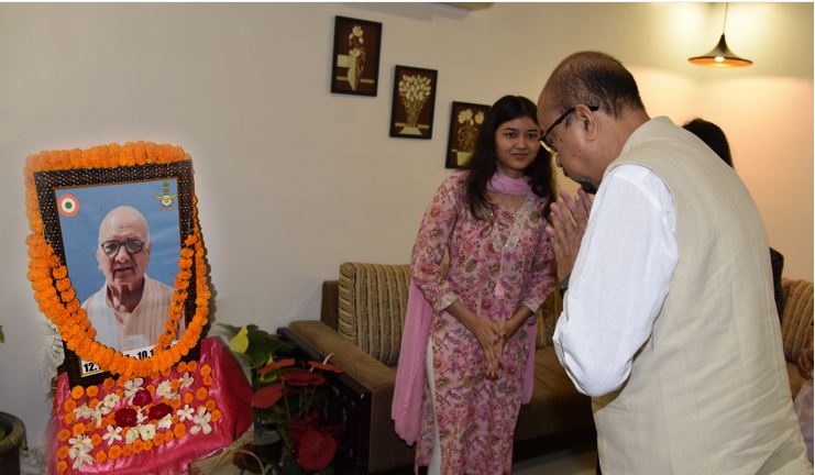 रायपुर, राज्यपाल श्री रमेन डेका आज विंग कमांडर (सेवानिवृत्त) श्री एमबी ओझा के निधन पर शोक व्यक्त करने उनके मौलश्री विहार स्थित निवास पर गए और उनके चित्र पर श्रद्धा सुमन अर्पित कर उन्हें श्रद्धांजलि दी। राज्यपाल ने शोक संतप्त परिजनों को ढांढस बंधाया।
