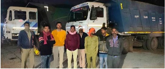 अवैध रेत परिवहन पर शिकंजा: गोबरा नवापारा में पांच हाईवा जब्त