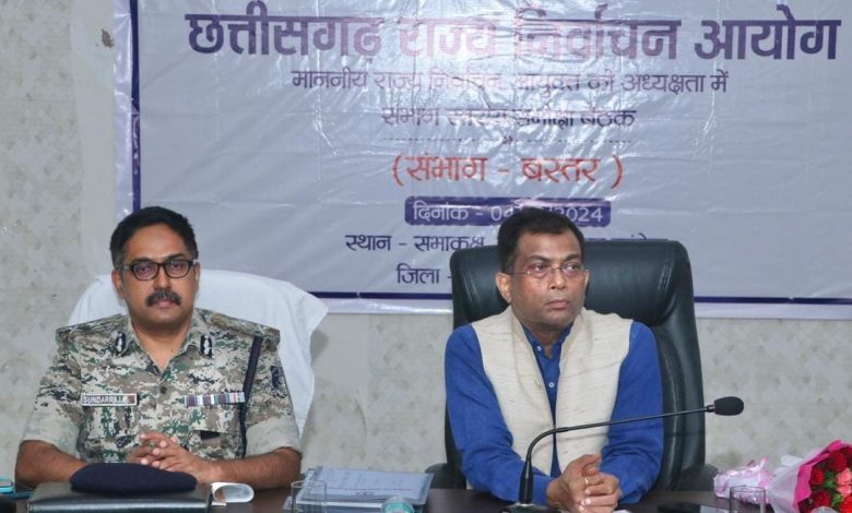 रायपुर,राज्य निर्वाचन आयुक्त श्री अजय सिंह की अध्यक्षता में जिला पंचायत कांकेर के सभाकक्ष में सुबह 11.00 बजे से नगरीय निकायों एवं त्रिस्तरीय पंचायतों में आगामी आम/उप निर्वाचन अंतर्गत निर्वाचन कार्यों की तैयारियों के संबंध में समीक्षा की गई। बैठक में बस्तर संभाग के संभाग आयुक्त श्री डोमन सिंह, पुलिस महानिरीक्षक सुंदरराज पी., पुलिस विभाग के नोडल अधिकारी श्री ओ.पी. पाल, आयोग के सचिव डॉ. सर्वेश्वर नरेन्द्र भुरे सहित संभाग के सभी जिला के कलेक्टर एवं पुलिस अधीक्षक तथा उप जिला निर्वाचन अधिकारी शामिल हुए। इस दौरान राज्य निर्वाचन आयुक्त ने सभी अधिकारियों को बस्तर संभाग में पारदर्शिता, निष्पक्षता के साथ शांतिपूर्ण निर्वाचन सम्पन्न कराने के निर्देश दिए। उन्होंने कहा कि नगरीय निकायों में प्रति एक हजार मतदाता के लिए एक मतदान केन्द्र और पंचायतों में निर्वाचन के लिए प्रति 500 मतदाता हेतु एक मतदान केन्द्र बनाया जाय । साथ ही यह भी कहा कि सभी पात्र मतदाताओं के नाम निर्वाचक नामावली में अनिवार्य रूप से जोड़े जाएं। राज्य निर्वाचन आयुक्त ने बैठक में मुख्य रूप से चुनाव के सुचारू रूप से संचालन हेतु चुनाव की तैयारी, सुरक्षा व्यवस्था, मतदान केन्द्रों की स्थिति और निर्वाचन प्रक्रिया से जुड़ी महत्वपूर्ण तैयारियों की समीक्षा की । इस बैठक के माध्यम से चुनाव के सुचारू और सुरक्षित संचालन को सुनिश्चित करने के लिए आवश्यक निर्देश दिए गए।