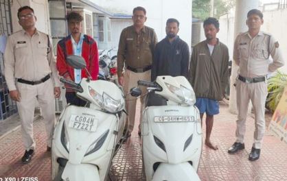 चोरी की वारदात को अंजाम देने वाले तीन आरोपी गिरफ्तार, दो एक्टिवा और एक पल्सर बरामद