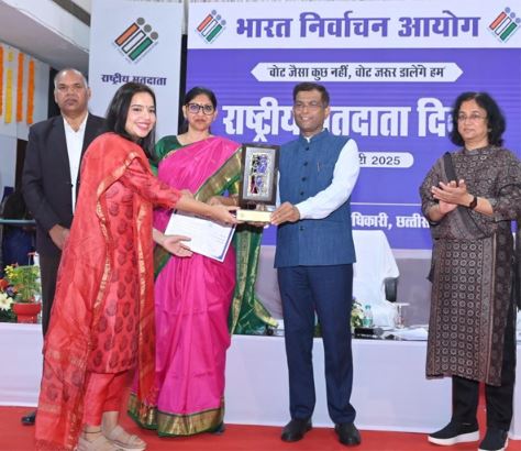 मतदाता दिवस के अवसर पर उपस्थित सभी लोगों को मतदाता शपथ दिलाई गई। कार्यक्रम में नव मतदाताओं, सर्विस वोटरों और निर्वाचन कार्यों में उल्लेखनीय योगदान देने वाले अधिकारियों-कर्मचारियों को सम्मानित किया गया। रायगढ़ कलेक्टर श्री कार्तिकेय गोयल को प्रदेश में लोकसभा निर्वाचन 2024 में सर्वाधिक 81.66 प्रतिशत मतदान कराए जाने, दुर्ग कलेक्टर सुश्री ऋचा प्रकाश चौधरी को शहरी क्षेत्र होने के बावजूद विगत लोकसभा चुनाव की तुलना में वर्ष 2024 में लोकसभा निर्वाचन में मतदान प्रतिशत में 2.48 प्रतिशत वृद्धि, दंतेवाड़ा कलेक्टर श्री मयंक चतुर्वेदी को धुर नक्सल प्रभावित क्षेत्र होते हुए भी विगत लोकसभा निर्वाचन की तुलना में लोकसभा निर्वाचन 2024 में 10.39 प्रतिशत वृद्धि के लिए उत्कृष्ट जिला निर्वाचन अधिकारी के रूप में सम्मानित किया गया। रायपुर कलेक्टर श्री गौरव कुमार सिंह को लोकसभा निर्वाचन 2024 के दौरान मतदान दलों का प्रशिक्षण कार्य उत्कृष्ट तरीके से संपन्न कराने, राजनांदगांव जिले की मुख्य निर्वाचन पदाधिकारी सुश्री सुरुचि सिंह को गुणवत्ता पूर्ण स्वीप गतिविधियां आयोजित करने और मुंगेली जिले के जिला पंचायत मुख्य कार्यपालन अधिकारी श्री प्रभाकर पांडे को प्रवासी मजदूरों को मतदान के लिए प्रेरित करने संबंधी स्वीप गतिविधियों के लिए स्पेशल अवार्ड से सम्मानित किया गया।