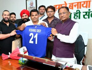 On this occasion, the Chief Executive Officer of Legend 90, Shri Tarunesh Singh Parihar, presented a special jersey bearing the number 21 of the Chhattisgarh Warriors team to the Chief Minister. This gesture was a tribute to the Chief Minister’s birth date, February 21, which inspired the team to design a special jersey with this number.