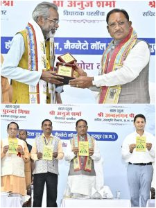 मुख्यमंत्री श्री साय ने कहा कि राज्य सरकार छत्तीसगढ़ी भाषा का मान-सम्मान बढ़ाने के लिए हर संभव प्रयास कर रही है। उन्होंने कहा कि पूर्व प्रधानमंत्री स्वर्गीय श्री अटल बिहारी वाजपेयी ने सन 2000 में छत्तीसगढ़ राज्य का निर्माण कर हमारे पुरखों के सपनों को साकार किया। अलग राज्य बनने के बाद अपनी महतारी की भाषा छत्तीसगढ़ी को सम्मान दिलाने की जिम्मेदारी हम सब की है। यह खुशी की बात है कि छत्तीसगढ़ी में बढ़िया किताबें लिखी जा रही है। इनमें से आज भागमानी, छत्तीसगढ़ के छत्तीस भाजी, छतनार, चल उड़ रे पुचुक चिरई, एक कहानी हाना के, गंगा बारू अउ माटी के दीया सहित छत्तीसगढ़ी भाषा की 11 पुस्तकों का विमोचन किया गया। आयोग के आठवें प्रांतीय सम्मेलन के अध्यक्ष और वरिष्ठ साहित्यकार श्री रामेश्वर वैष्णव, वरिष्ठ साहित्यकार डॉ. रमेन्द्र नाथ मिश्र, डॉ. विनय कुमार पाठक, संचालक संस्कृति एवं राजभाषा श्री विवेक आचार्य, छत्तीसगढ़ राजभाषा आयोग के सचिव डॉ. अभिलाषा बेहार सहित अनेक गणमान्य साहित्यकार उपस्थित थे।