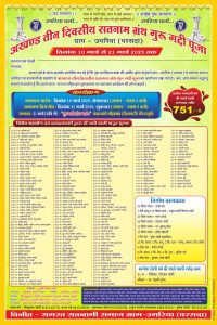 प्रतिवर्ष की भाती इस वर्ष भी हमारे ग्राम पंचायत उमरिया (परसदा) मैं तीन दिवसीय अखंड नामायण व सतनाम ग्रंथ गुरु गद्दी पुजा दिनाक 18.3.2025 से 21.3.2025 तक रखा गया है।