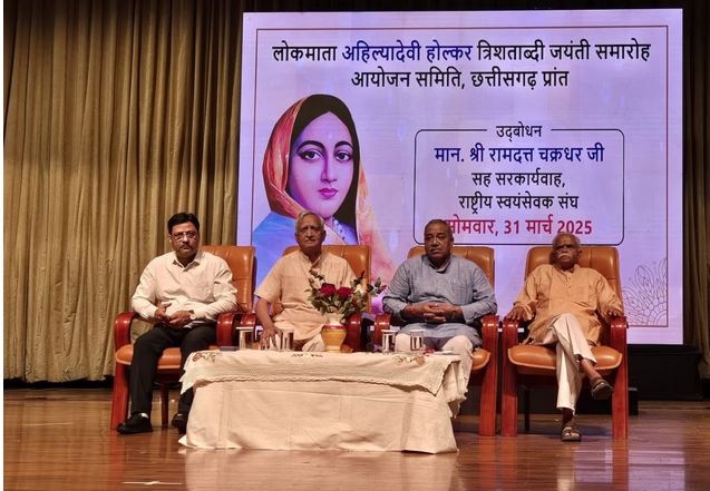रायपुर-लोकमाता अहिल्यादेवी होल्कर त्रिशताब्दी जयंती समारोह आयोजन समिति छत्तीसगढ़ प्रांत द्वारा सोमवार को रायपुर स्थित दीनदयाल उपाध्याय ऑडिटोरियम में व्याख्यान आयोजित किया गया। इस अवसर पर मुख्य अतिथि के रूप में बोलते हुए राष्ट्रीय स्वयंसेवक संघ के सह सरकार्यवाह श्री रामदत्त चक्रधर ने कहा हमारे देश ने समय-समय पर कई प्रतिकूलताओं का सामना करते हुए भी कई गौरवशाली कीर्तिमान स्थापित किए हैं। यह इस पवित्र भूमि में जन्म लेने वाली महान विभूतियों, संत व समाज सुधारकों के कृतित्व का परिणाम है। लोकमाता अहिल्यादेवी राष्ट्र की ऐसी ही एक प्रेरणापुंज हैं, जिनसे वर्तमान एवं भावी पीढ़ी को प्रेरणा प्राप्त करनी चाहिए। उन्होंने कहा कि महापुरुषों के चरित्र को पढऩे व स्मरण करने से राष्ट्र जीवन को दिशा मिलती है। श्री रामदत्त चक्रधर ने पुण्यश्लोका अहिल्यादेवी के जीवन चरित्र का वर्णन करते हुए कहा कि वह एक सामान्य परिवार से थीं। उनके जीवन में तीन गुण ऐसे थे, जो उन्हें महान वीरांगना बनाते हैं। इनमें पहला गुण अभयम अर्थात साहस है। उनका राज्य बहुत विस्तृत था, कई बार उन्हें विद्रोह का सामना करना पड़ा, लेकिन लोकमाता ने अपनी अद्भुत सैन्य क्षमता से उसका स्थायी समाधान किया। उन्होंने संपूर्ण भारत को एकात्मता के सूत्र में बांधने का कार्य किया। सह सरकार्यवाह श्री रामदत्त जी ने इस अवसर पर कहा कि लोकमाता के जीवन का दूसरा गुण कुशल प्रशासक का था। उनके परिवार में दुर्घटनाओं की लंबी श्रृंखला हुई, लेकिन इसके बाद भी उन्होंने प्रशासनिक कौशल में कहीं उदासीनता नहीं दिखाई। नासिक में एक निर्माण कार्य के दौरान आर्थिक अनियमितता की शिकायत उन तक पहुंची तो उन्होंने तत्काल संबंधित अधिकारी को उसके पद से हटा दिया। इसी प्रकार पंढऱपुर में एक अन्य निर्माण कार्य की गुणवत्ता जांचने के लिए उन्होंने हाथियों को निर्माण कार्य के ऊपर चलवाया। लोकमाता के राज्य में निर्धन व्यक्ति को कोई भी धनवान व्यक्ति प्रताडि़त नहीं कर सकता था। वह कहतीं थी कि जनता और शासन के बीच मां और संतान का संबंध होता है। श्री रामदत्त चक्रधर ने अपने वक्तव्य में कहा कि लोकमाता ने महेश्वर में स्वदेशी उद्योग लगवाए। उनके जीवन चरित्र का एक गुण उनकी आध्यात्मिकता है। हम सब उनके चित्र को देखें तो उनके हाथ में शिवलिंग है। उन्होंने देशभर में मंदिरों का निर्माण व जीर्णोद्धार करवाया। काशी, बद्रीनाथ, केदारनाथ, गया समेत अनेक स्थानों पर उन्होंने मंदिर बनवाए। पंढऱपुर यात्रियों के लिए वह भोजन व्यवस्था करवाती थीं। न्याय के लिए तो वह प्रसिद्ध हैं ही, वह हमेशा सनातन मूल्यों को जीती थीं। अपने उद्बोधन में श्री रामदत्त चक्रधर ने कहा कि भारत का यह स्वर्णिम कालखंड है