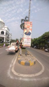 रायपुर- नगर पालिक निगम रायपुर के सभापति श्री सूर्यकान्त राठौड़ का फोटो बैनर- पोस्टर नगर पालिक निगम रायपुर के मुख्यालय भवन के सामने लगा हुआ था. आज संध्या सभापति महोदय ने इसे अपने संज्ञान में लेकर नगर निगम मुख्यालय नगर निवेश विभाग उड़न दस्ता की टीम के नगर निवेशक श्री आभाष मिश्रा और उप अभियंता श्री अमित सरकार को वहाँ बुलवाकर तत्काल नगर निगम मुख्यालय भवन के सामने मार्ग के पोल्स पर लगे अपने फोटो बैनर- पोस्टर को टीम भेजकर हटवाने के निर्देश दिए. सभापति के निर्देश पर नगर निवेश उड़न दस्ता की टीम द्वारा सभापति सूर्यकान्त राठौड़ के फोटो बैरन – पोस्टर को पोल्स ने निकालने की कार्यवाही तत्काल की गयी.