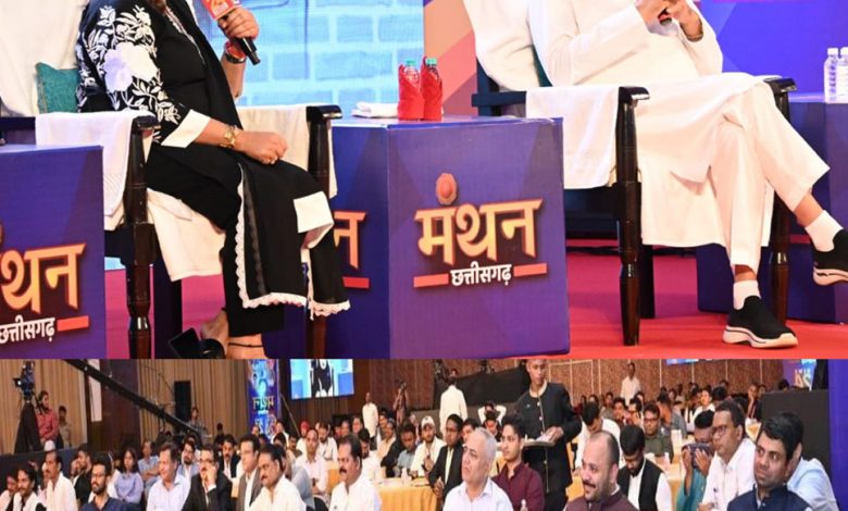 मुख्यमंत्री श्री भूपेश बघेल आज राजधानी रायपुर स्थित एक निजी होटल में न्यूज 24 द्वारा आयोजित ‘मंथन छत्तीसगढ़‘ कार्यक्रम में शामिल हुए। भूपेश का छत्तीसगढ़ मॉडल क्या है पूछने पर मुख्यमंत्री ने कहा कि छत्तीसगढ़ सरकार जनता के सर्वांगीण विकास के लिए हर संभव योजनाओं को संचालित कर समृद्ध करने का कार्य कर रही है। इसी मॉडल के अंतर्गत प्रदेश में 750 से अधिक स्वामी आत्मानंद उत्कृष्ट अंग्रेजी-हिन्दी माध्यम स्कूल खोले गए हैं। इन स्कूलों के माध्यम से उन परिवारों को राहत मिली है और बच्चे इंग्लिश मीडियम में पढ़ कर निजी स्कूल के बच्चों से आगे बढ़ रहे हैं। उन्होंने कहा कि मजदूरों, बेरोजगारों और किसानों को भी सीधे उनके खाते में राशि ट्रांसफर किए जा रहे हैं।