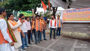 वक्फ बोर्ड बिल का समर्थन ना करने वाले सांसदो के खिलाफ, वीर हिन्दू परिषद, राष्ट्र बजरंग दल” द्वारा विरोध प्रदर्शन हुआ |