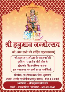 श्री हनुमान जन्मोत्सव की पूर्व बेला पर दिनाँक 11/04/25 को आज शाम राजीव गांधी चौक, रायपुर पर