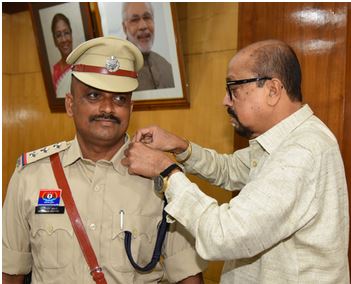 स्टार सेरेमनी में राज्यपाल की सुरक्षा में तैनात निरीक्षक को उप पुलिस अधीक्षक का स्टार लगाया गया