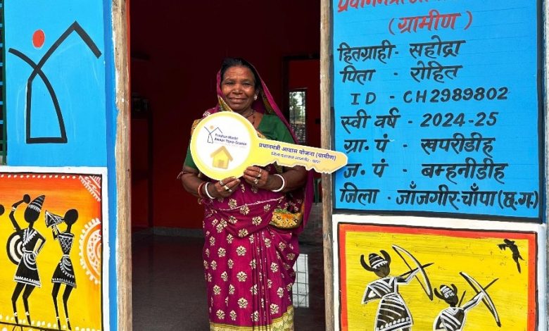 रायपुर, प्रधानमंत्री आवास योजना (ग्रामीण) के तहत जब श्रीमती सहोद्रा बाई धनुवार को अपने घर की चाबी मिली, तो यह महज चाबी नहीं थी यह उनके आत्मसम्मान और सुरक्षित भविष्य की शुरुआत थी। जांजगीर-चांपा जिले के जनपद पंचायत बम्हनीडीह अंतर्गत ग्राम पंचायत पुछेली खपरीडीह में धरती आबा जनजातीय उत्कर्ष अभियान के दौरान जब श्रीमती सहोद्रा बाई धनुवार को मंच से प्रधानमंत्री आवास योजना (ग्रामीण) के अंतर्गत निर्मित पक्के घर की चाबी सौंपी गई, तो उनके चेहरे की मुस्कान देखते ही बनती थी। उन्होंने मुस्कराते हुए सहजता से कहा, “चाबी तो दे दी आपने, लेकिन ताला नहीं दिया। ”उनकी यह मासूम बात सुनकर पूरा वातावरण मुस्कान और भावनाओं से भर गया। यह क्षण न केवल उनके लिए, बल्कि पूरे गाँव के लिए गर्व और खुशी का था।