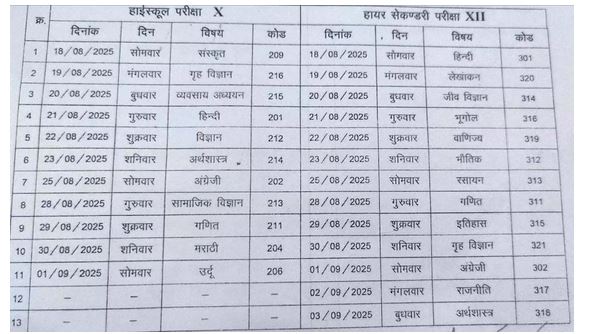 रायपुर। छत्तीसगढ़ राज्य ओपन स्कूल, रायपुर द्वारा अगस्त-सितम्बर 2025 सत्र की हाईस्कूल और हायर सेकंडरी ओपन परीक्षाओं की तिथियां घोषित कर दी गई हैं। जारी आदेश के अनुसार, परीक्षा 18 अगस्त 2025 से शुरू होकर 03 सितम्बर 2025 तक आयोजित की जाएगी। हायर सेकंडरी (12वीं) की परीक्षाएं 18 अगस्त से 03 सितम्बर तक और हाईस्कूल (10वीं) की परीक्षाएं 18 अगस्त से 01 सितम्बर 2025 तक संपन्न होंगी।