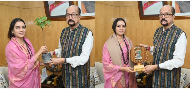 राज्यपाल डेका से वाटर वुमेन पाठक ने की सौजन्य भेंट
