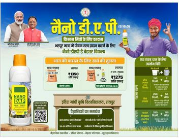 नैनो डीएपी एक आधुनिक, किफायती और प्रभावशाली तरल उर्वरक है, जो पारंपरिक डीएपी की तुलना में कहीं अधिक उपयोगी और पोषक तत्वों से भरपूर है। इंदिरा गांधी कृषि विश्वविद्यालय, रायपुर के वैज्ञानिकों ने नैनो डीएपी का समर्थन करते हुए कहा है कि इसके उपयोग से खेती की लागत में कमी आती है। नैनो डीएपी खेत में पोषण की कमी को प्रभावी ढंग से पूरा करता है और उत्पादन की गुणवत्ता को भी बढ़ाता है। नैनो डीएपी पर्यावरण के लिए भी सुरक्षित है। एक एकड़ धान की फसल के लिए एक बोरी ठोस डीएपी का उपयोग होता है। जिसकी लागत 1350 रूपए होती हैै, जबकि एक एकड़ में 25 किलो ठोस डीएपी और 500 मिली नैनो डीएपी के मिश्रण का उपयोग किया जाए तो इसकी लागत घटकर 1275 रूपए आती है।
