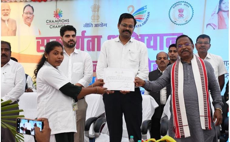 रायपुर, कृषि और आदिम जाति कल्याण मंत्री श्री रामविचार नेताम आज बलरामपुर जिले के शंकरगढ़ विकासखंड में आयोजित जिला स्तरीय सम्पूर्णता सम्मान कार्यक्रम में शामिल हुए। मंत्री श्री रामविचार नेताम ने जिला स्तरीय संपूर्णता अभियान सम्मान समारोह को संबोधित करते हुए कहा कि शंकरगढ़ विकासखण्ड सम्पूर्णता अभियान में शत-प्रतिशत सफलता हासिल की है। आंकाक्षी विकासखंड को इस कीर्तिमान के लिए बधाई और शुभकामनाएं देता हूं। उन्होंने कहा कि नीति आयोग द्वारा चयनित शंकरगढ़ विकासखण्ड में सभी विभागों के सहयोग से चिन्हांकित इंडिकेटर में शत-प्रतिशत उल्लेखनीय कार्य किया गया, जिसका बेहतर परिणाम देखने को मिल रहा है। मंत्री श्री नेताम ने इस मौके पर संपूर्णता अभियान अंतर्गत विभिन्न इंडिकेटर मे विशिष्ट कार्य करने वाले कर्मचारियों एवं फ्रंटलाईन वर्कर को प्रशस्ति पत्र देकर सम्मानित किया।