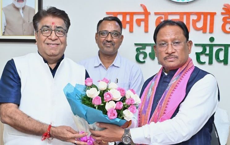 रायपुर, मुख्यमंत्री श्री विष्णु देव साय से यहाँ उनके निवास कार्यालय में ट्रिपल आई टी नया रायपुर के निदेशक प्रोफेसर ओमप्रकाश व्यास ने सौजन्य मुलाकात की।