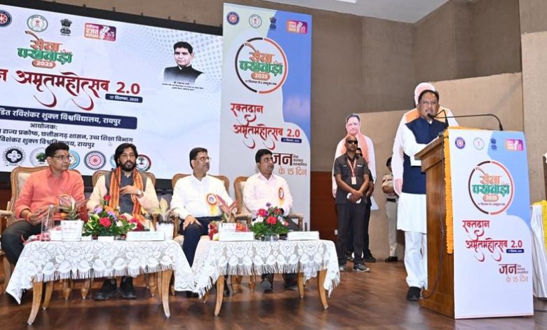 राष्ट्रीय सेवा योजना राज्य प्रकोष्ठ, उच्च शिक्षा विभाग एवं पं. रविशंकर शुक्ल विश्वविद्यालय, रायपुर के संयुक्त आयोजन में सेवा पखवाड़ा के अंतर्गत रक्तदान शिविर आयोजित किया गया। कार्यक्रम में जानकारी दी गयी कि इसके अंतर्गत 10000 यूनिट रक्तदान का लक्ष्य रखा गया है। 17 सितंबर से 2 अक्टूबर तक चलने वाले सेवा पखवाड़ा के तहत प्रदेश भर के महाविद्यालयों में रक्तदान सहित विभिन्न गतिविधियां आयोजित की जा रही हैं।