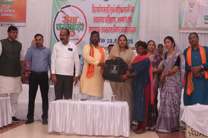 रायपुर, सेवा पखवाड़ा कार्यक्रम के अंतर्गत सूरजपुर जिले में दिव्यांगजनों एवं वरिष्ठजनों के लिए स्वास्थ्य परीक्षण, सम्मान एवं सहायक उपकरण वितरण शिविर का आयोजन किया गया। इस अवसर पर मुख्य अतिथि के रूप में महिला एवं बाल विकास मंत्री श्रीमती लक्ष्मी राजवाड़े शामिल हुईं।