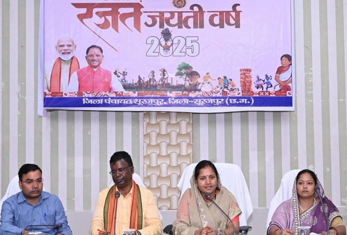 मंत्री श्रीमती राजवाड़े सूरजपुर जिला पंचायत कार्यालय में आयोजित एक बैठक को संबोधित कर रही थीं। इस बैठक में जिले के सभी सरपंचों एवं सीएससी द्वारा अधिकृत वीएलई (Village Level Entrepreneur) उपस्थित रहे।