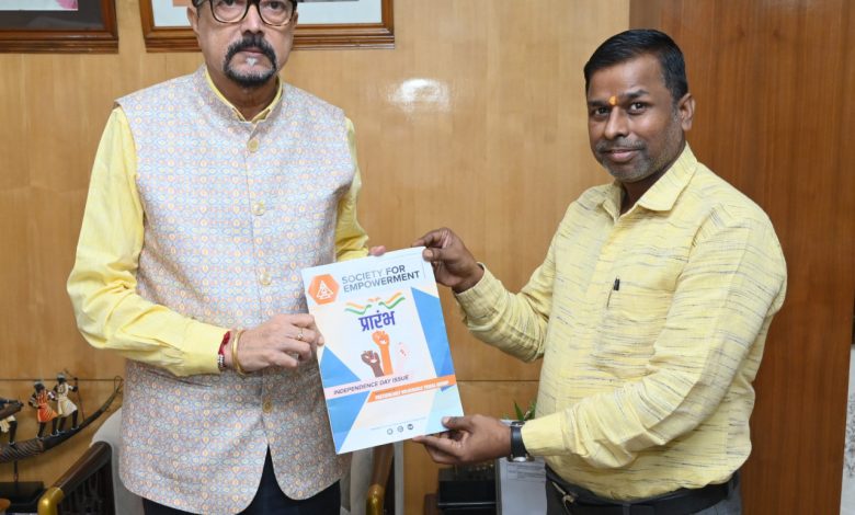 रायपुर, राज्यपाल श्री रमेन डेका को आज राजभवन में ‘‘सोसाइटी फॉर एम्पावरमेंट‘‘ द्वारा प्रकाशित मासिक पत्रिका ‘‘प्रारंभ‘‘ की प्रति भेंट की गई। विशेष पिछड़ी जनजातियों पर केंद्रित इस विशेषांक का संपादन मानवविज्ञानी एवं राज्यपाल के उप सचिव डॉ. रूपेन्द्र कवि द्वारा किया गया है।