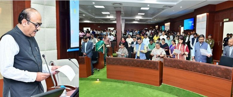 मुख्य सचिव ने भारत के संविधान की उद्देशिका का वाचन कराया कि ’’हम, भारत के लोग, भारत को एक सम्पूर्ण प्रभुत्व-सम्पन्न समाजवादी पंथनिरपेक्ष लोकतंत्रात्मक गणराज्य बनाने के लिए तथा उसके समस्त नागरिकों केा सामाजिक, आर्थिक और राजनैतिक न्याय, विचार, अभिव्यक्ति, विश्वास, धर्म और उपासना की स्वतंत्रता, प्रतिष्ठा और अवसर की समता प्राप्त कराने के लिए, तथा उन सब में व्यक्ति की गरिमा और राष्ट्र की एकता और अखण्डता सुनिश्चित करने वाली बंधुता बढ़ाने के लिए दृढ़संकल्प होकर अपनी इस संविधान सभा में आज तारीख 26 नवम्बर, 1949 ई. (मिति मार्गशीर्ष शुक्ला सप्तमी, संवत् दो हजार छह विक्रमी) को एतद्द्वारा इस संविधान को अंगीकृत, अधिनियमित और आत्मार्पित करते है।’’