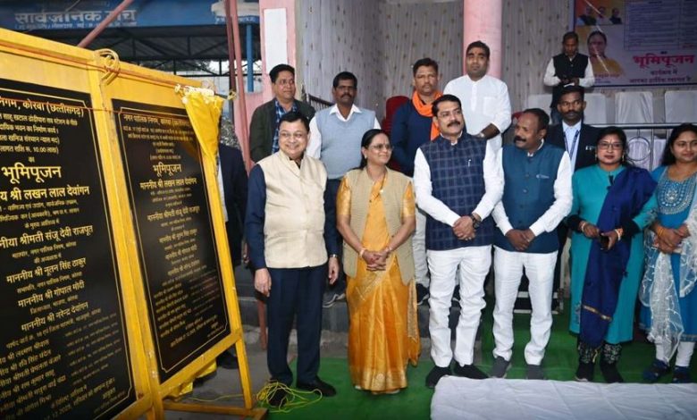 नगर पालिक निगम कोरबा द्वारा टी.पी.नगर जोनांतर्गत वार्ड क्र. 18 अंतर्गत शासकीय हाई स्कूल कोहड़िया में 05 लाख 94 हजार रूपये की लागत से शौचालय निर्माण कार्य, वार्ड क्र. 18 अंतर्गत बरपारा (छोटे नर्सरीपारा) विनय साहू के घर से नारायण घर तक 18 लाख रूपये की लागत से नाली निर्माण एवं रोड मरम्मत कार्य, वार्ड क्र. 18 कोहड़िया में 20 लाख रूपये की लागत से सामुदायिक भवन निर्माण कार्य, वार्ड क्र. 18 के विभिन्न बस्तियों में 50 लाख रूपये की लागत से सी.सी. रोड व नाली निर्माण कार्य, वार्ड क्र. 15 अंतर्गत स्वामी आत्मानंद उत्कृष्ट हिन्दी माध्यम स्कूल कन्या साडा कोरबा में 06 लाख 30 हजार रूपये की लागत से साईकल स्टैण्ड निर्माण कार्य, वार्ड क्र. 15 अंतर्गत पन्द्रह ब्लाक आंगनबाड़ी क्र. 01 पीछे 05 लाख रूपये की लागत से मंच निर्माण कार्य, वार्ड क्र. 17 अंतर्गत छ.ग.रा.वि.मं.कं. 01 सुलभ से लेकर वर्षा किराना स्टोर एवं सराई पेड़़ से लक्ष्मी राठौर के घर तक 08 लाख रूपये की लागत से सी.सी. रोड एवं नाली निर्माण कार्य, वार्ड क्र. 17 अंतर्गत गौठानपारा रसियन हास्टल ढोढ़ीपारा में 20 लाख रूपये की लागत से नाली, सी.सी. रोड निर्माण कार्य, वार्ड क्र. 17 ढोढ़ीपारा कबीर आश्रम में 10 लाख रूपये की लागत से सामुदायिक भवन निर्माण कार्य, वार्ड क्र. 17 अंतर्गत साहू खटाल ढोढ़ीपारा सब स्टेशन के पीछे 10 लाख रूपये की लागत से सामुदायिक भवन का निर्माण कार्य, वार्ड क्र. 17 ढोढ़ीपारा में शिव चबूतरा नंदू पटेल घर के पास 05 लाख रूपये की लागत से सार्वजनिक मंच निर्माण कार्य, वार्ड क्र. 03 गेरवाघाट में शिव मंदिर के बगल में 05 लाख रूपये की लागत से शेड निर्माण कार्य, वार्ड क्र. 03 श्री अग्रसेन महाविद्यालय दर्री रोड कोरबा के परिसर के पास 10 लाख रूपये की लागत से प्रसाधन निर्माण कार्य, नगर पालिक निगम कोरबा क्षेत्र अंतर्गत वार्ड क्र. 03 इंदिरा स्टेडियम के पास स्थित 30 लाख 32 हजार रूपये की लागत से आडिटोरियम का जीर्णोद्धार एवं विकास कार्य, वार्ड क्र. 04 अंतर्गत बजरंग चौक शिव मंदिर गली राताखार में शिव मंदिर के सामने बिन्दु सिंह राजपूत के घर तक 15 लाख रूपये की लागत से सी.सी. रोड एवं नाली निर्माण कार्य तथा वार्ड क्र. 04 अंतर्गत राताखार बजरंग चौक के पास 10 लाख रूपये की लागत से सामुदायिक भवन निर्माण कार्य का भूमिपूजन उद्योग मंत्री श्री लखनलाल देवांगन एवं महापौर श्रीमती संजूदेवी राजपूत के द्वारा किया गया।