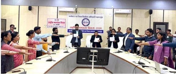 जिला पंचायत के मुख्य कार्यपालन अधिकारी हेमंत नंदनवार ने कहा कि लोकतंत्र में सभी नागरिकों को समान अधिकार प्राप्त हैं और प्रत्येक मतदाता का एक ही वोट होता है। 18 वर्ष पूर्ण करने पर प्रत्येक नागरिक को मताधिकार प्राप्त होता है, जो एक मौलिक अधिकार है। उन्होंने कहा कि ग्रामीण क्षेत्रों में मतदान प्रतिशत अपेक्षाकृत अधिक रहता है और हमें शहरी एवं ग्रामीण दोनों क्षेत्रों में मतदाता जागरूकता को और मजबूत करना होगा। कार्यक्रम में अपर कलेक्टर श्री सचिन भूतड़ा, रवि साहू, अनुविभागीय अधिकारी अक्षा गुप्ता सहित संबंधित अधिकारी-कर्मचारी मौजूद थे। साथ ही जिले के सभी कार्यालयों में राष्ट्रीय मतदाता दिवस के अवसर पर शपथ ली गई।