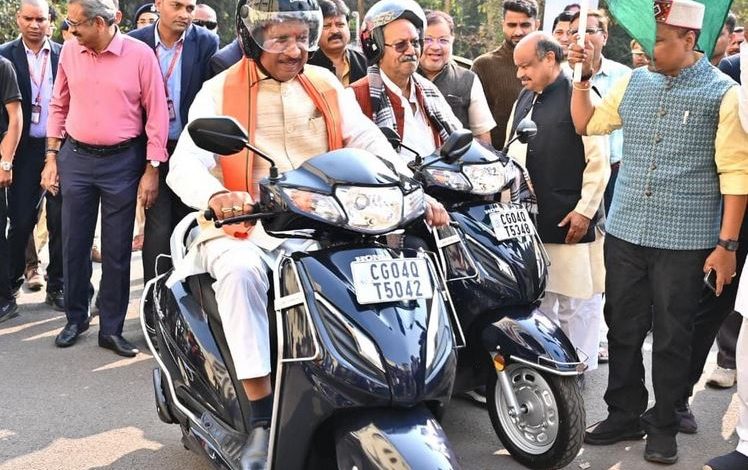 मुख्यमंत्री श्री साय ने सड़क सुरक्षा का संदेश देते हुए स्वयं हेलमेट पहनकर बाइक चालकों के दल के साथ स्कूटी चलाई।कार्यक्रम में मुख्यमंत्री श्री साय ने राजधानी रायपुर के पंडरी में आधुनिक लाइसेंस सेंटर कार्यालय भवन पंडरी का भूमिपूजन और प्रदेश भर में मुख्यमंत्री ग्रामीण बस योजना के तहत 12 नवीन मार्गों में 12 नवीन बसों का शुभारंभ किया।