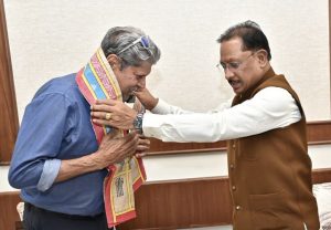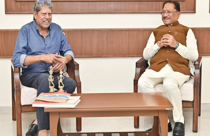 रायपुर , मुख्यमंत्री श्री विष्णु देव साय से आज नया रायपुर स्थित मुख्यमंत्री निवास कार्यालय में भारतीय क्रिकेट टीम के पूर्व कप्तान कपिल देव ने सौजन्य मुलाकात की। मुख्यमंत्री ने श्री कपिल देव को बेल मेटल से बनी प्रतिकृति, पुण्यभूमि छत्तीसगढ़ कॉफी टेबल बुक भेंट कर उनका अभिनंदन किया। मुलाकात के दौरान दोनों के बीच प्रदेश में खेलों को बढ़ावा देने, आधुनिक खेल अधोसंरचना के विकास, अंतरराष्ट्रीय स्तर के प्रशिक्षण केंद्र तथा प्रतिभाशाली खिलाड़ियों को तैयार करने जैसे विषयों पर विस्तृत चर्चा हुई। इस दौरान मुख्यमंत्री के प्रमुख सचिव श्री सुबोध कुमार सिंह उपस्थित थे।