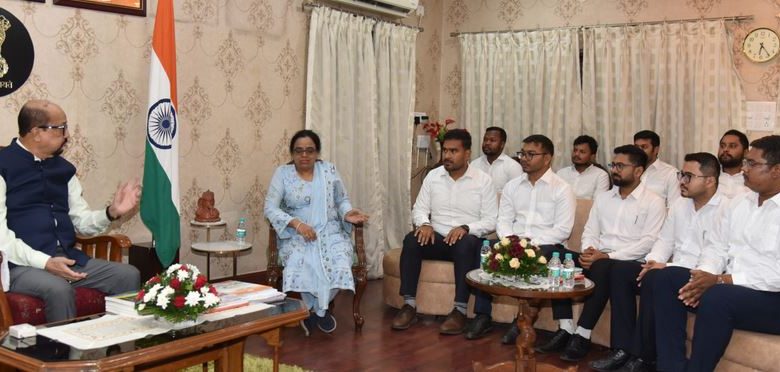 रायपुर, राज्यपाल श्री रमेन डेका से आज लोकभवन में छत्तीसगढ़ लोक सेवा आयोग से चयनित होकर विभिन्न जिलों में सेवा दे रहे नायब तहसीलदारों ने सौजन्य भेंट की। ये सभी वर्तमान में राज्य प्रशासनिक अकादमी निमोरा में प्रशिक्षण प्राप्त कर रहे हैं।