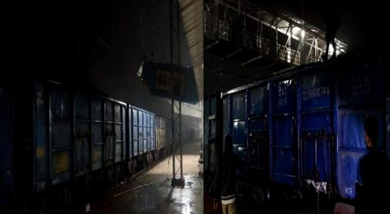 रेलवे स्टेशन पर मची अफरा-तफरी, कोयले से भरी मालगाड़ी के डिब्बे में लगी आग