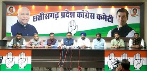 पत्रकार वार्ता में प्रदेश कांग्रेस के प्रभारी महामंत्री मलकीत सिंह गैदू, महेन्द्र छाबड़ा, वरिष्ठ प्रवक्ता धनंजय सिंह ठाकुर, सुरेन्द्र वर्मा, प्रवक्ता अजय गंगवानी, ऋषभ चंद्राकर, मतीन खान उपस्थित थे।